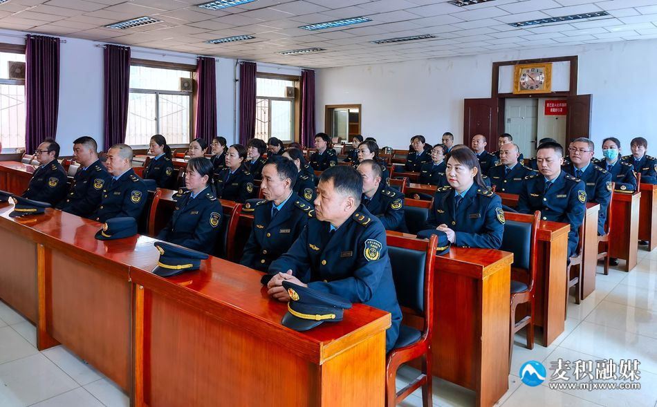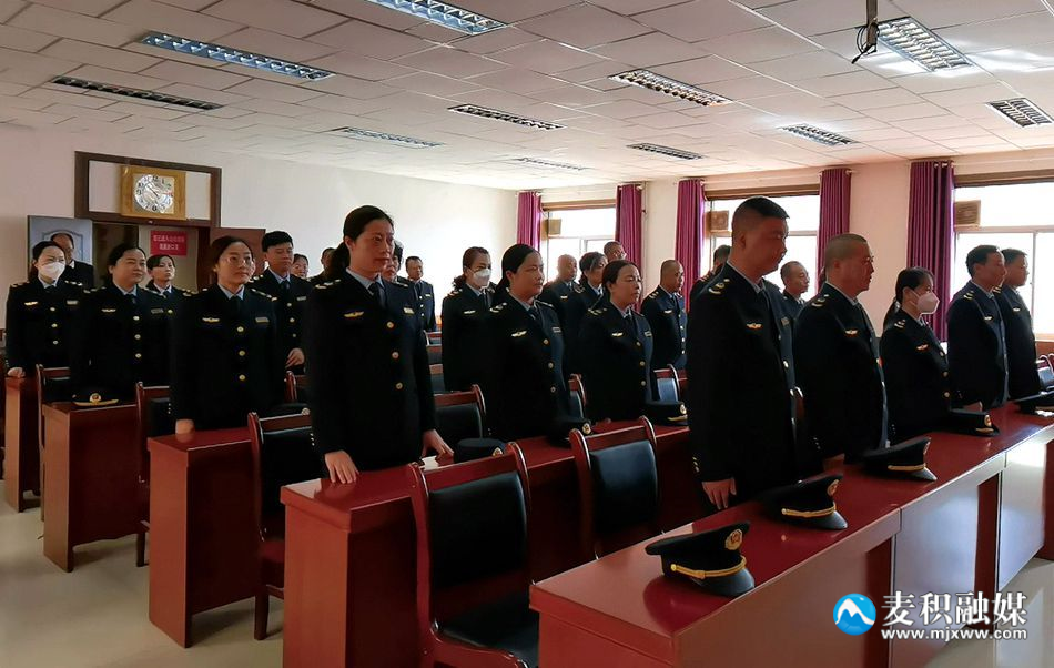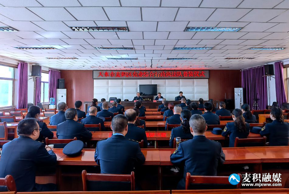 仪式在庄严的国歌声中拉开序幕,全体执法人员身着新式制服精神抖擞、英姿飒爽,展现了麦积区农业综合行政执法队伍的新气象。