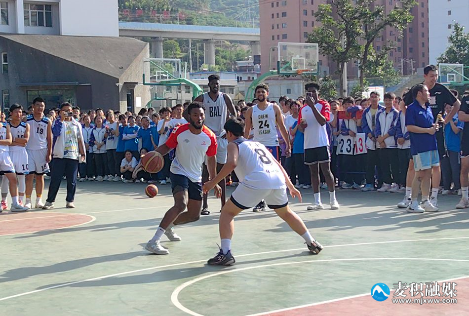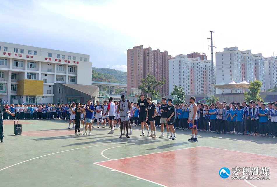 6月26日下午,在麦积区教育局、区体育发展中心的支持下,2023“麓宸杯”中美职业男篮10名队员来到天水市第二中学篮球场,和学生们进行面对面交流,并在球场上进行互动“切磋”。