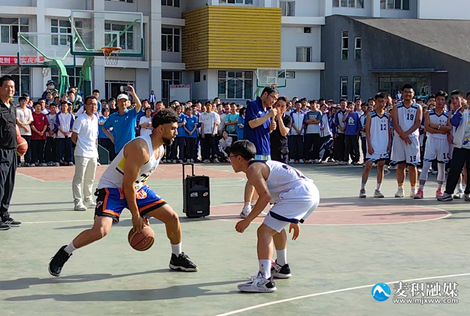 在天水市第二中学的篮球场上,主持人对中美职业球员进行了简短的介绍,双方队员在相互握手致意后,队员们和同学们进行了一对一进攻防守、三分球投篮、多人友谊赛等PK。场上的队员和同学们积极互动,“火力全开”,造就了一个个燃爆瞬间,引得场外呐喊欢呼,掀起阵阵声浪。