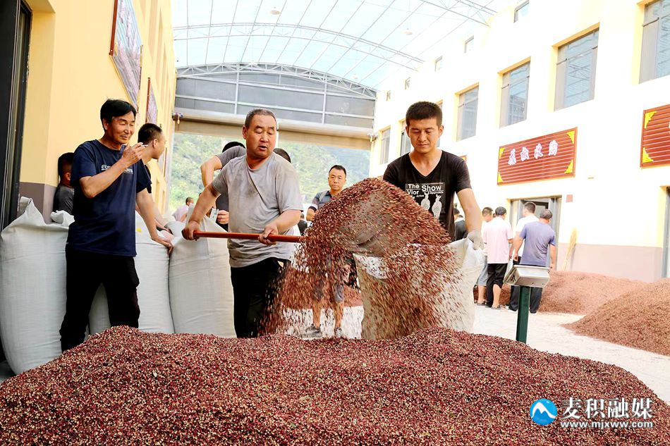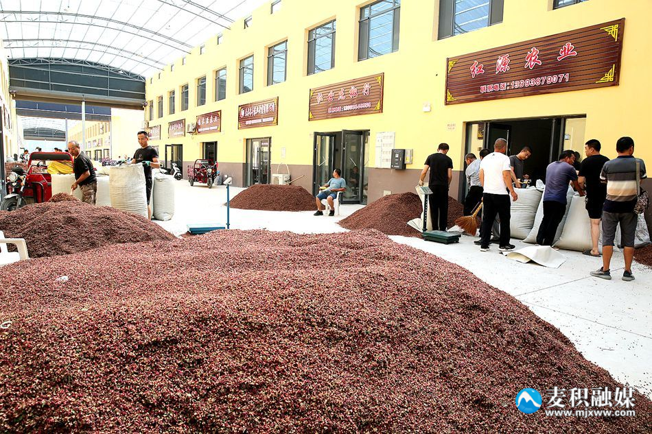 麦积花椒产业园里,交易红火,客商、椒农、当地的花椒经营户,在观看花椒品相,商谈着价格,又一年花椒收获的季节到了。