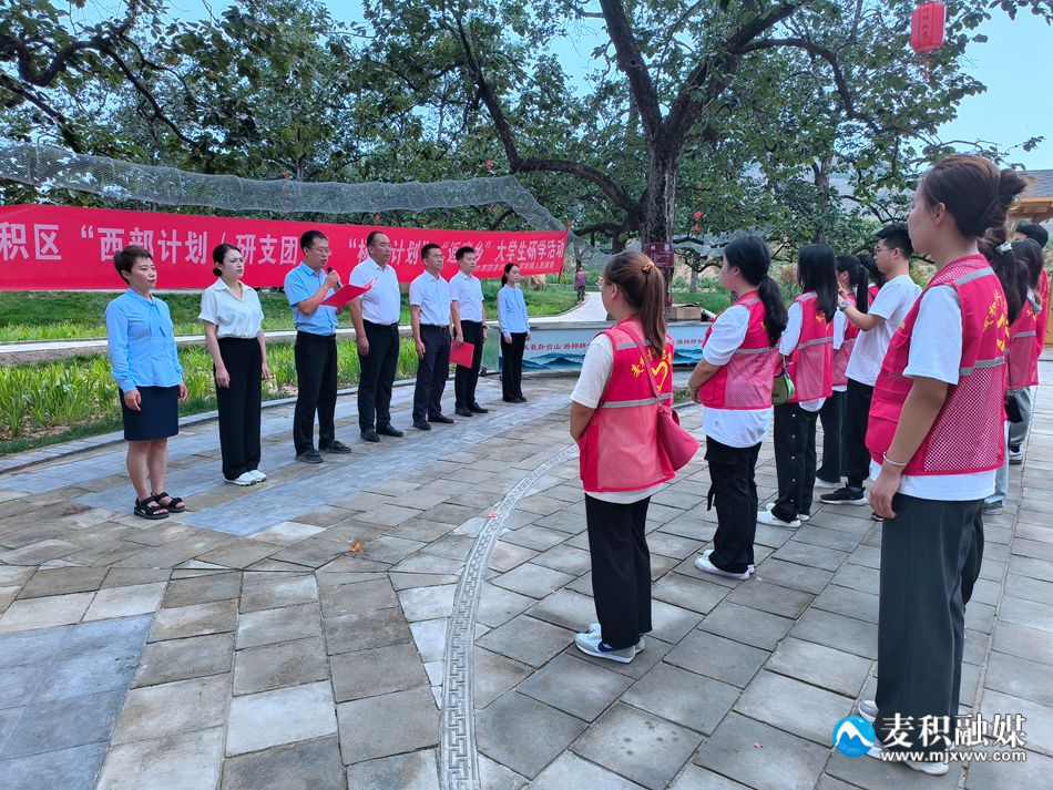 麦积区融媒体中心讯 (记者 王博雅)8月22日,麦积区2023年“西部计划(研支团)”“扬帆计划”“返家乡”大学生研学活动暨关爱留守儿童活动在渭南镇张新村柿柿如意园举行,50多名高校大学生组成的研学团,通过参观考察、互动体验、交流分享等多种方式,深入探寻麦积文化魅力,感知家乡发展变化。