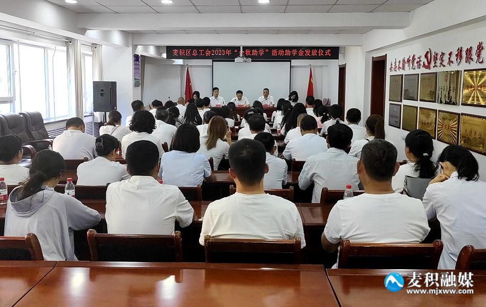 麦积区融媒体中心讯(记者 白梨 王惠萍)8月24日,麦积区总工会举行2023年“金秋助学”活动助学金发放仪式。区委常委、副区长刘秦文出席仪式并讲话,区政协副主席温绪祖主持仪式。