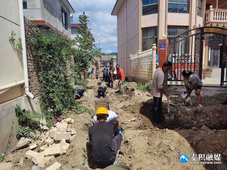 8月31日,记者在麦积区甘泉镇西枝村看到,村民们正拿着钉耙、铁锹、镰刀、铲子等农用工具,和施工人员一起在巷道里埋放排水管道。大家你挖我铲、相互配合、一派热火朝天的劳动场面。大伙一边干活一边感慨道,这各家各户院子里的水都流进排水管了,以后村里的路面上就不会污水横流了……