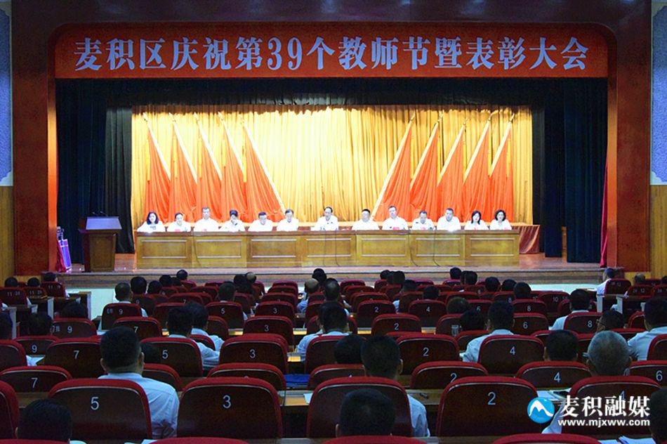 麦积区融媒体中心讯(记者 姚苗 马玉婷 莫哲涛)9月8日,麦积区召开庆祝第39个教师节暨表彰大会。区委书记康泰来出席会议并讲话,区领导赵继文、高志强、王明、朵建东、辛凌雯、李东海、强永斌、马秀丽、刘秦文、杨彦芳、胡桂琳出席会议,区委常委、常务副区长安伟主持会议。