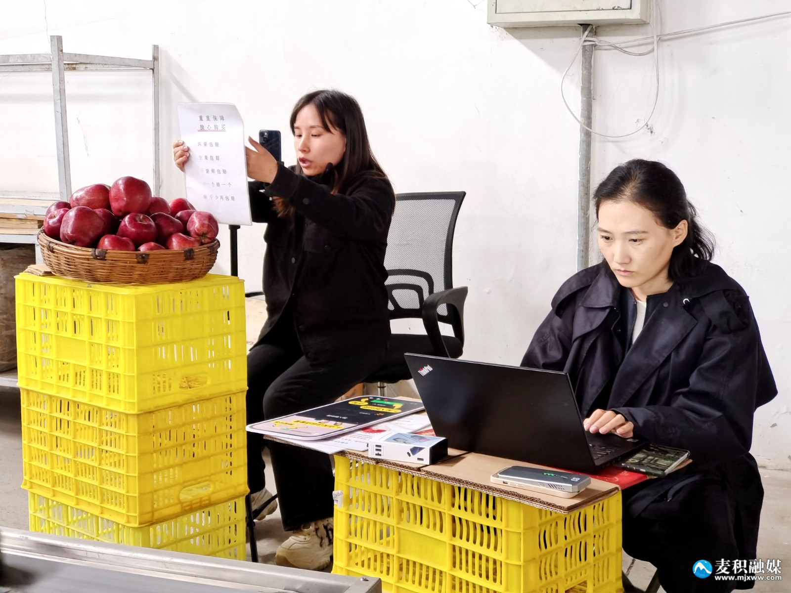 麦积区融媒体中心讯(记者 吴雪镕 见习记者 魏碧雲)近日,2023年天水市庆祝第六个中国农民丰收节暨首届中国·天水花牛苹果大会在麦积区隆重开幕,同一时间,在麦积区甘泉镇甘江村的豆选众谊(天水)商贸有限公司的“豆选优品”直播间里,随着主播的热情讲解和展示,又收获几笔花牛苹果订单。