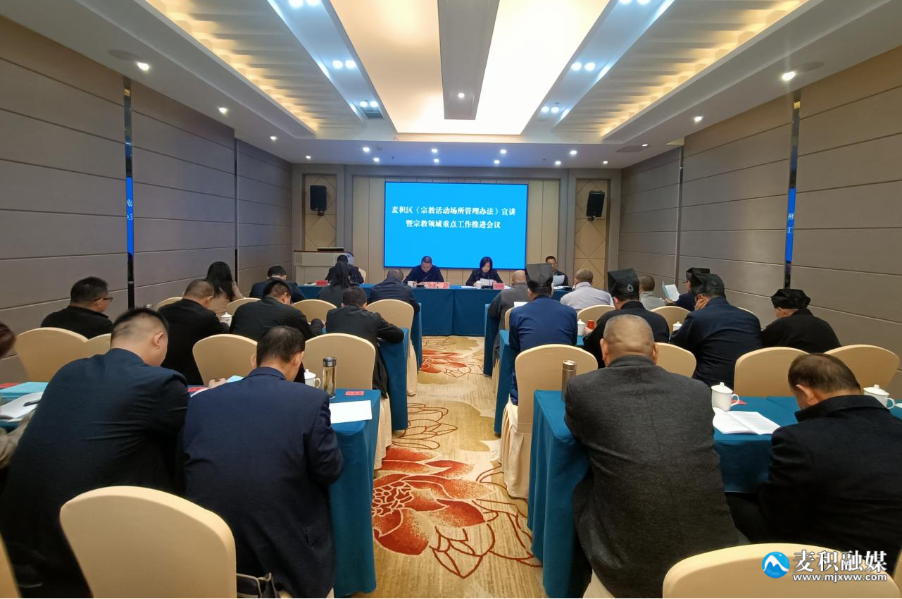 为持续深入贯彻落实《宗教活动场所管理办法》,安排部署我区宗教领域重点工作,10月18日,麦积区组织召开《宗教活动场所管理办法》宣讲暨宗教领域重点工作推进会议。麦积区委常委、统战部部长、区政协党组副书记马秀丽出席会议,区委统战部(区民宗局)、区委网信办、区公安分局,各镇(街道)党(工)委副书记及全区五大宗教团体班子成员50余人参加会议。