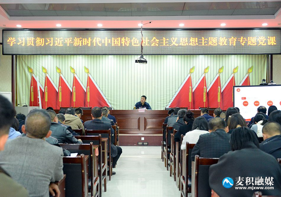 麦积区融媒体中心讯(记者 宋倩倩 莫哲涛)按照区委主题教育工作安排,10月30日,区委副书记、区长赵虎生以“感悟思想伟力,凝聚奋进力量,加快谱写花牛镇高质量发展新篇章”为题,为花牛镇镇村党员干部讲授学习贯彻习近平新时代中国特色社会主义思想主题教育专题党课。他强调,要全面学习领会习近平新时代中国特色社会主义思想,坚持学思用贯通、知信行统一,把习近平新时代中国特色社会主义思想转化为坚定理想、锤炼党性和指导实践、推动工作的强大力量,努力在以学铸魂、以学增智、以学正风、以学促干方面取得实效。