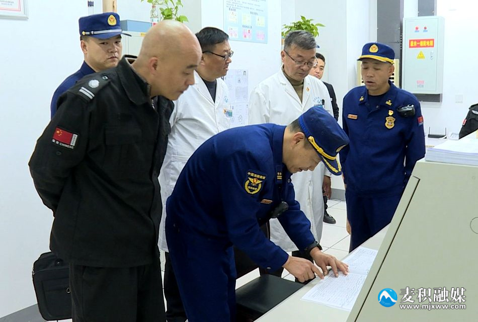 在天水市第四人民医院,检查组围绕消防安全、电气化管理、危化品安全、建筑施工等重点领域,采取查阅资料、现场检查的方式,对医院住院部、门诊部等人员密集场所和氧气机房、配电发电房、消控值班室、各安全出口及消防水箱等防火要害部位的安全措施落实情况进行了现场督查,指出存在问题,并对排查出的风险隐患提出了相应整改意见。