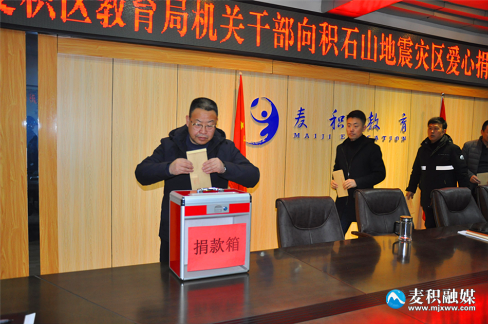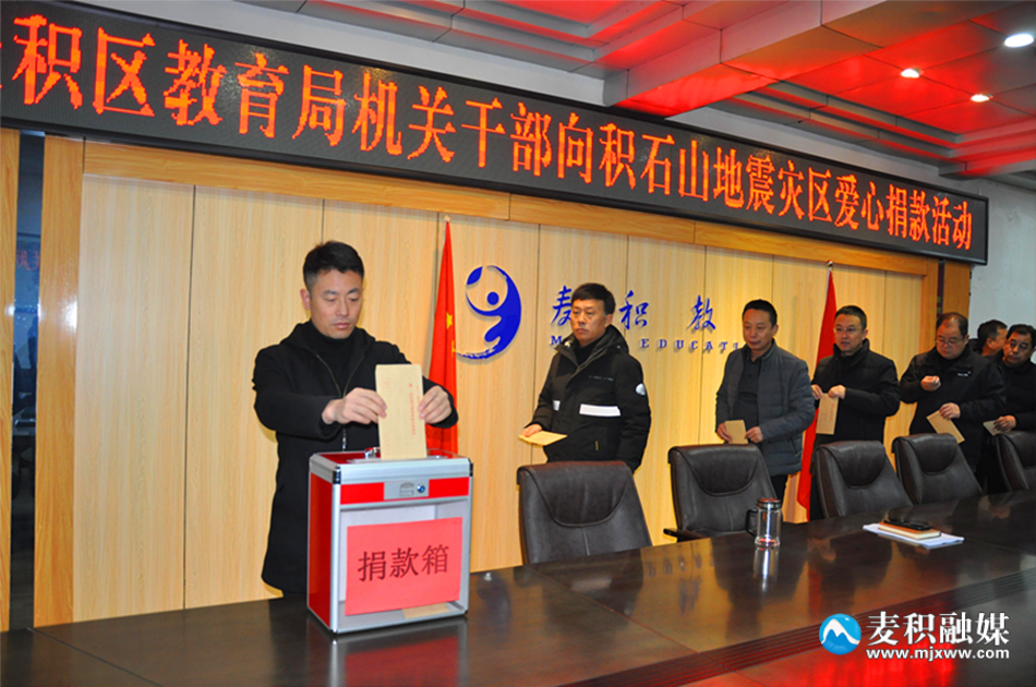 麦积区融媒体中心讯 临夏州积石山县发生6.2级地震后,灾情牵动了麦积区教育系统干部职工的心。麦积区教育局迅速发出倡议,号召教育系统广大党员干部职工奉献爱心,自愿捐款支援积石山地震灾区抗震救灾和灾后重建,以实际行动与灾区群众同舟共济、共渡难关。