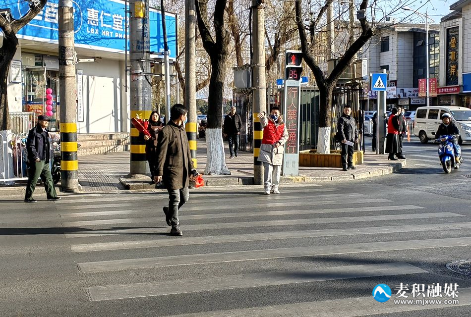 连日来,记者在麦积区各个路口总能见到熟悉的“红马甲”,他们出现在主干道旁、背街小巷,他们手持红旗,在交警的带领下开展文明交通劝导,纠正乱穿马路、闯红灯、不戴头盔等不文明交通行为,提醒过往行人遵守交通规则,注意交通安全,引导大家自觉摒弃交通陋习、抵制交通违法行为,做文明交通的践行者和维护者。
