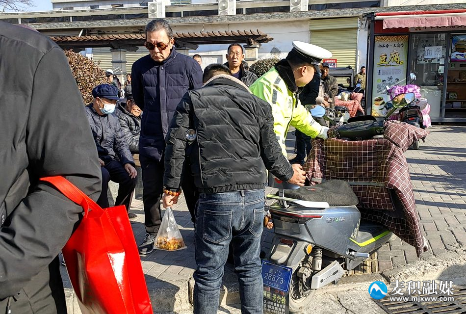 “您好,请佩戴好头盔。”“您好,请等绿灯亮起后再通行。”在交通高峰时段,由各个单位组成的志愿者队伍分别在道北十字路口、桥南法院路口、埠南路等多个十字路口协助维持交通秩序。