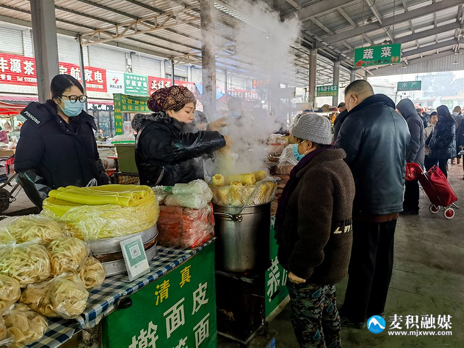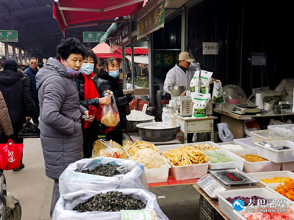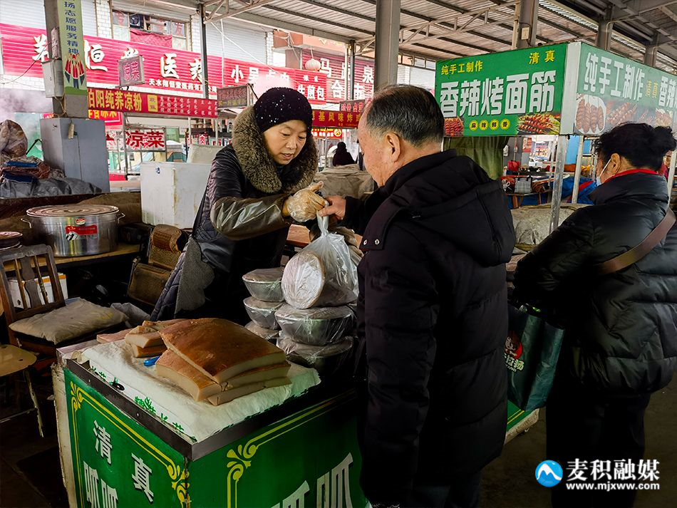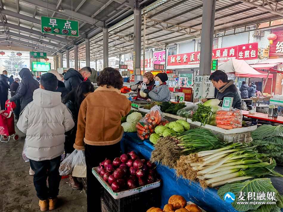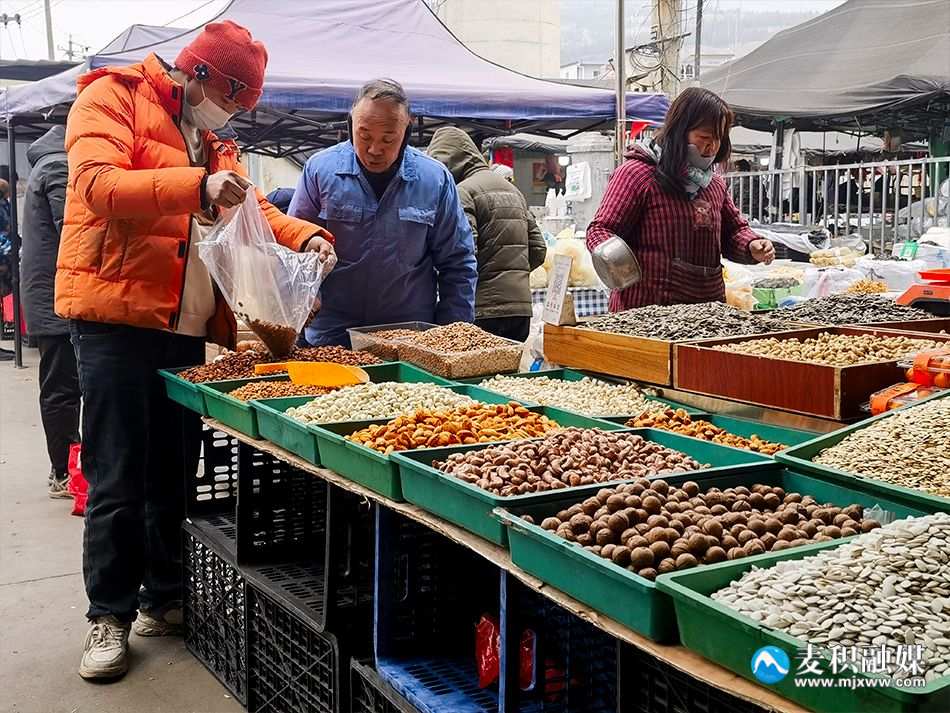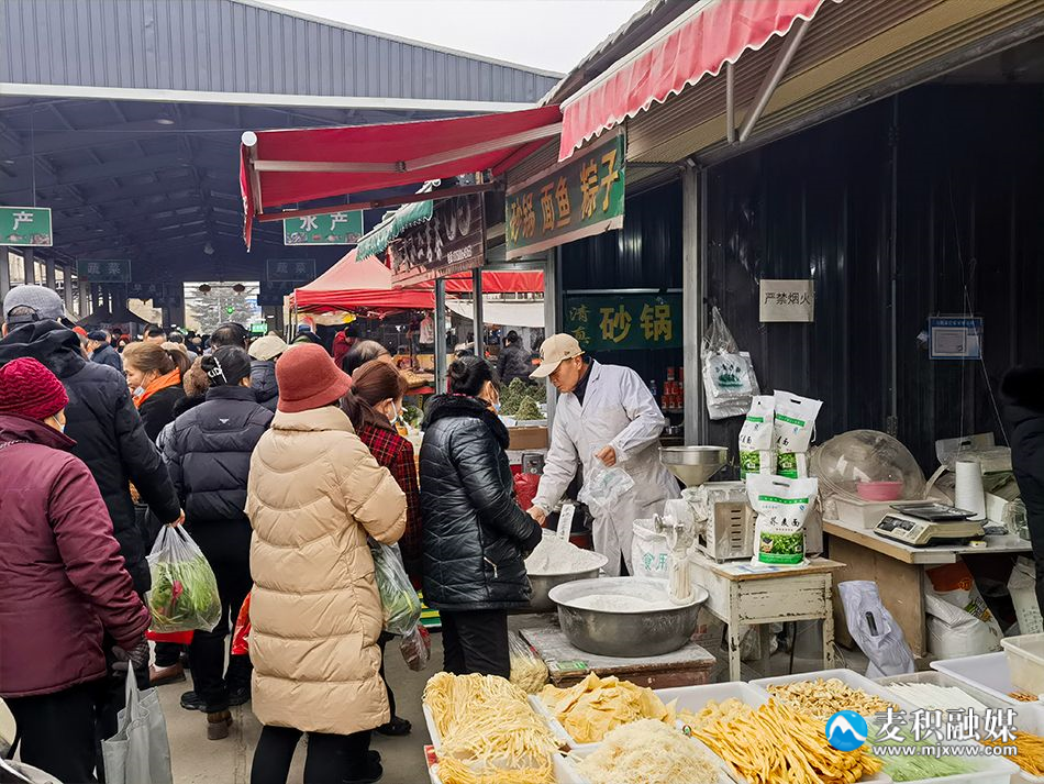 麦积区融媒体中心讯(记者 刘秋钰 董洁) 腊月里来赶集,是人们久久不散的乡情,也是农家腊月忙年的重头戏。在麦积区马跑泉农贸市场,群众置办年货的场景尤为热闹。
