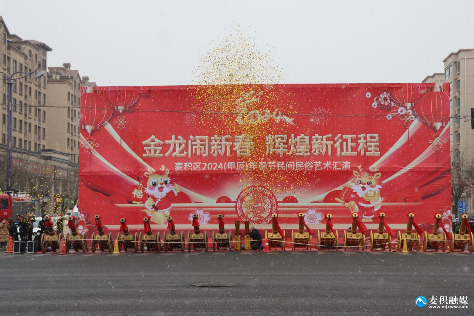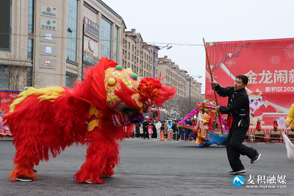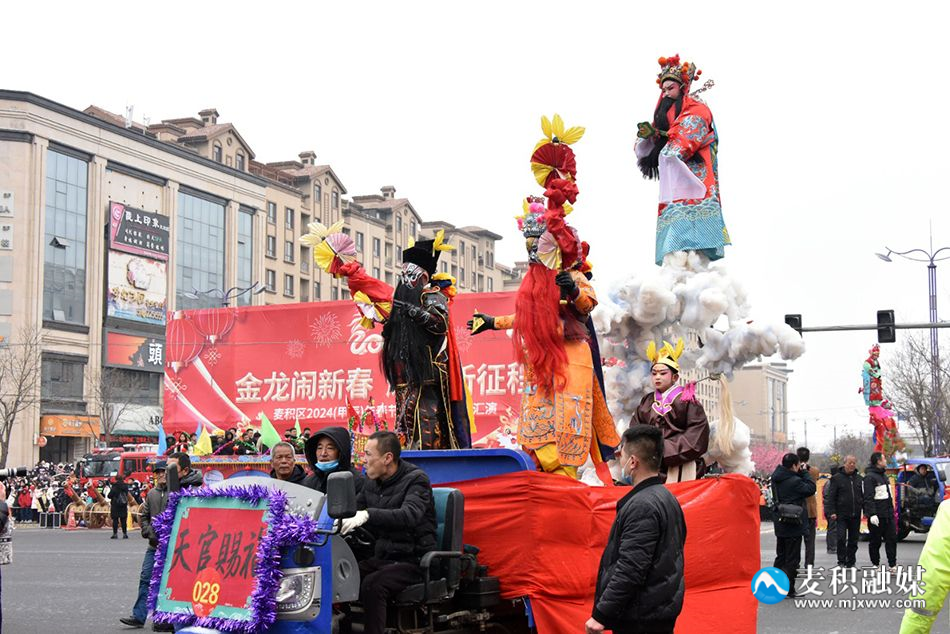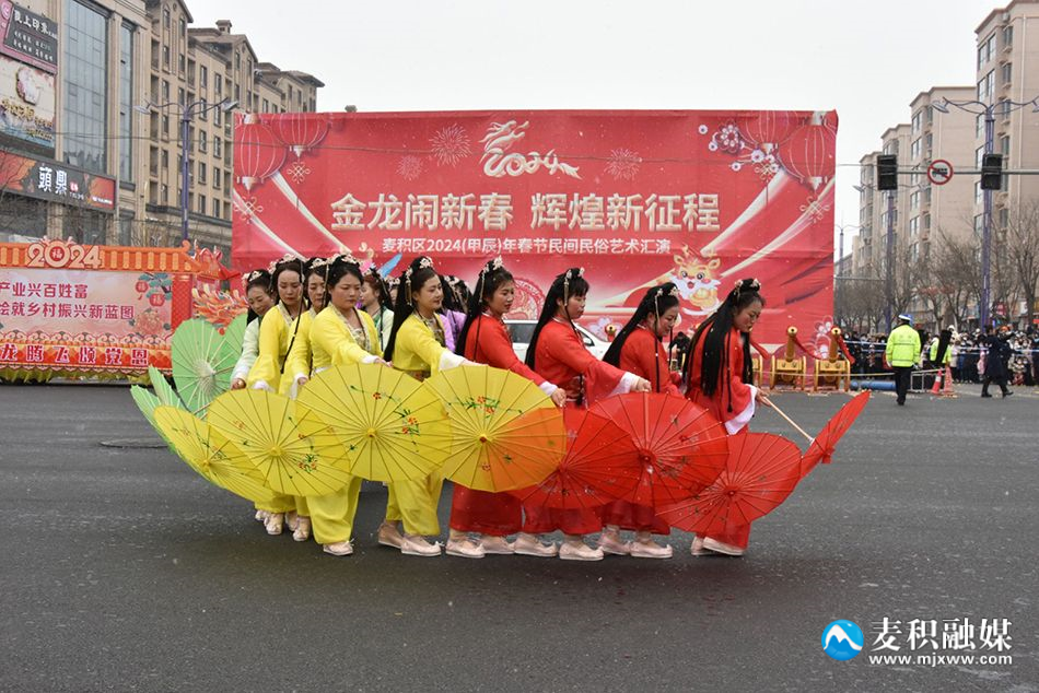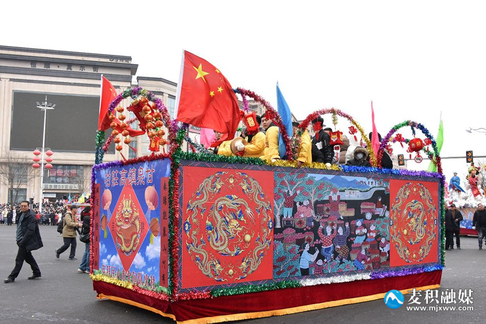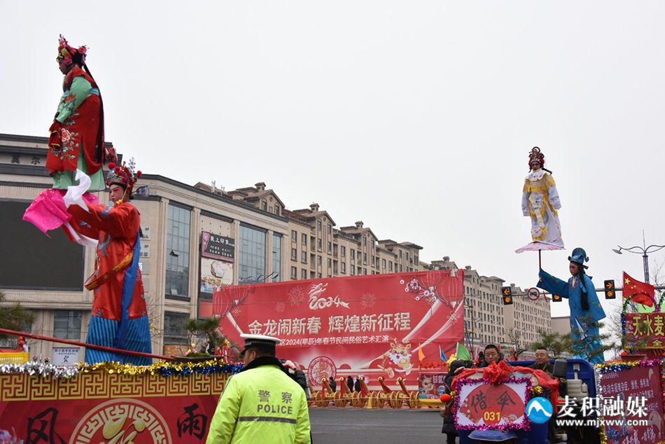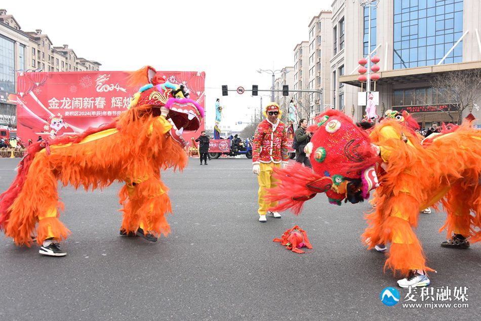 麦积区融媒体中心讯 2月22日(农历正月十三),麦积区举行2024年传统社火汇演活动,来自麦积镇、甘泉镇、花牛镇、马跑泉镇、社棠镇、道北街道、北道埠街道、桥南街道的社火表演队伍带着新春的问候和祝福隆重登场。舞龙、舞狮、旱船、武术、舞蹈、秧歌、腰鼓、彩车……身着盛装的社火队员个个精神抖擞,踏着鼓点尽情演绎,通过多种形式全面展现非物质文化遗产、社火文化及传统文化的独特魅力。
