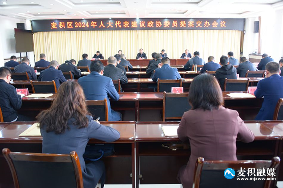麦积区融媒体中心讯(记者 姚苗 胡旭东)3月30日,麦积区召开2024年人大代表建议、政协委员提案交办会议。区委常委、副区长刘灿,区人大常委会副主任陈宝林,区政协副主席王进孝出席会议,区政府副区长杨杨主持会议。