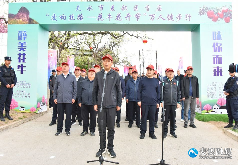 麦积区融媒体中心讯(记者 王雯 白梨)万人健步走,麦积加速跑。4月13日,天水市麦积区首届“交响丝路-花牛花开”节万人健步行活动正式启动。区委书记康泰来出席启动仪式并宣布活动正式开始,区委副书记、区长赵虎生主持启动仪式,赵继文、高志强、王明等区四大组织领导及区法检两长参加仪式。