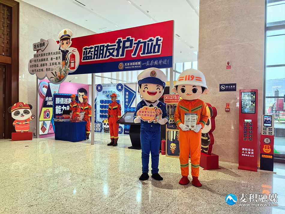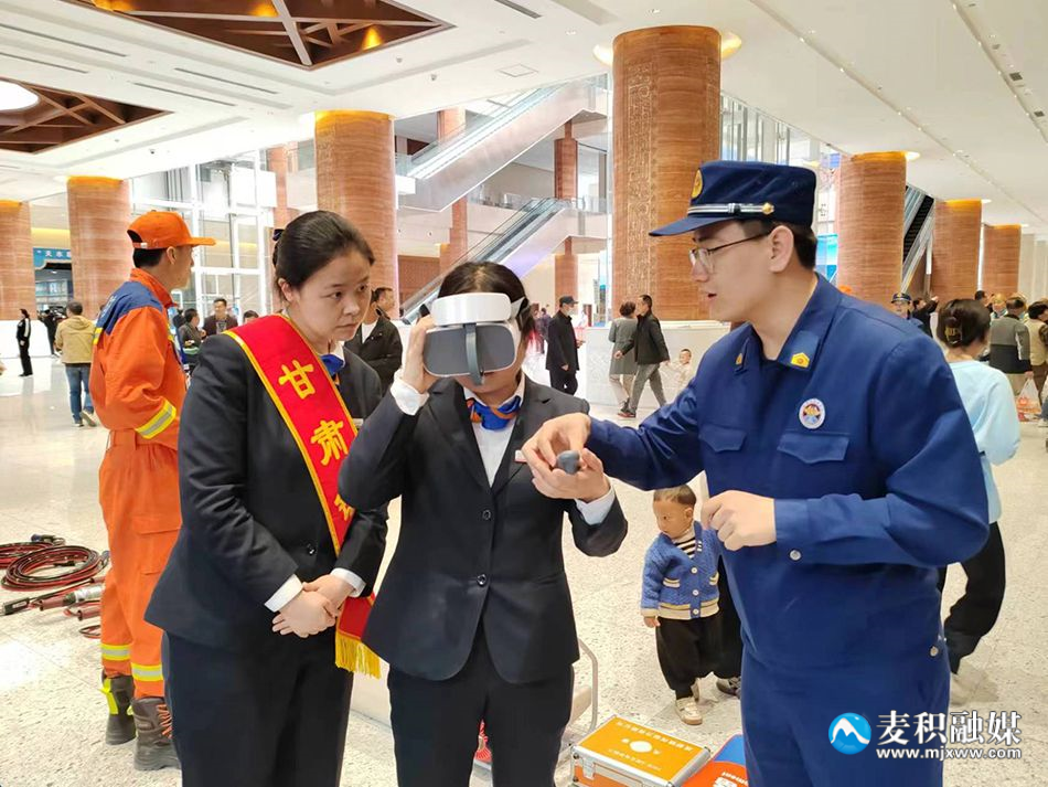 近期,随着天水麻辣烫的持续火爆,天水市会展中心等社会公共场所人流量不断增多。为了让广大游客在品尝美食的同时提高消费安全意识,麦积区消防救援大队的宣传人员在人流量较为集中的区域,通过VR设备让前来游览的外地游客朋友体验模拟地震逃生场景,通过模拟场景和实物展示的方式增强大家的消防安全意识和逃生自救能力。与此同时,设在另一旁的“蓝朋友护力站”中,更有众多消防队员现场通过小游戏普及消防常识,倡导群众不私接乱拉电线、不拥堵消防通道等,提高市民创城知晓度和满意度。