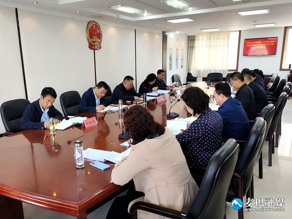 麦积区融媒体中心讯(记者 董洁) 5月10日,麦积区人大常委会党组举行党纪学习教育读书班集中学习暨交流研讨会议。区人大常委会党组书记、主任赵继文主持会议并讲话,区人大常委会副主任参加会议,常委会各委室负责人和机关党员干部职工列席会议。