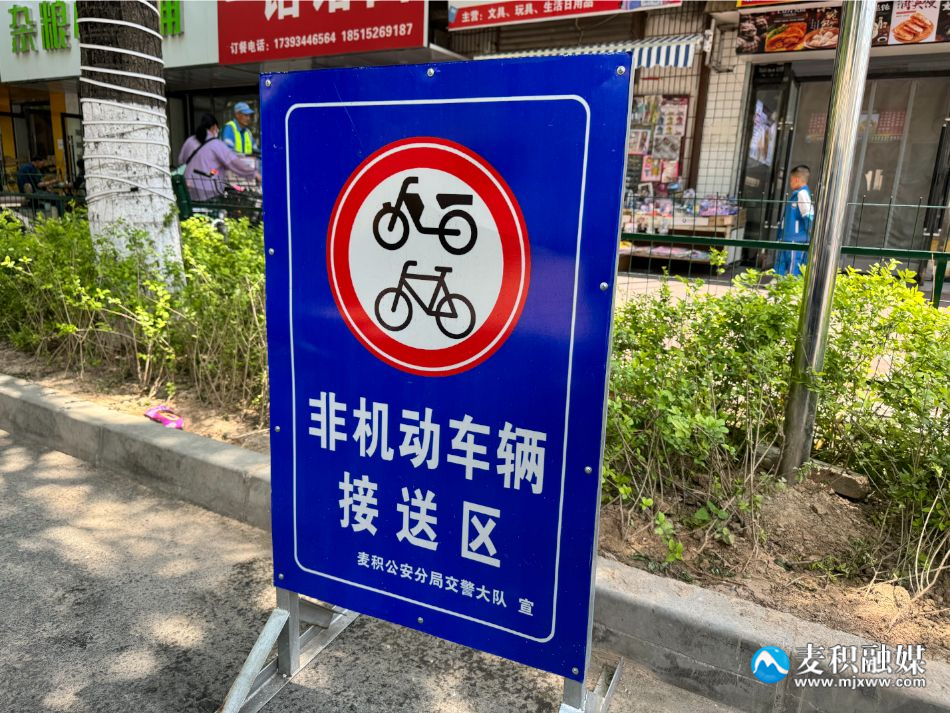 为了方便家长接送学生,麦积交警在学校附近设立了机动车、非机动车停放区域,家长可将车辆有序停放在指定区域,既避免了道路拥堵,又确保了学生的安全。