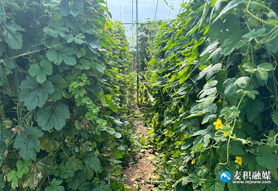 麦积区融媒体中心讯(记者宋倩倩杜佳)初秋时节,麦积区甘泉镇黄庄村的蔬菜大棚内呈现出一派生机勃勃、硕果累累的丰收景象。一个个顶花带刺、青翠欲滴的黄瓜挂满了枝蔓,一株株西红柿挺拔而茂盛,绿叶间挂满了饱满圆润、色泽鲜亮诱人的果实,它们密密麻麻地簇拥在一起,编织出了一幅丰收的画卷。