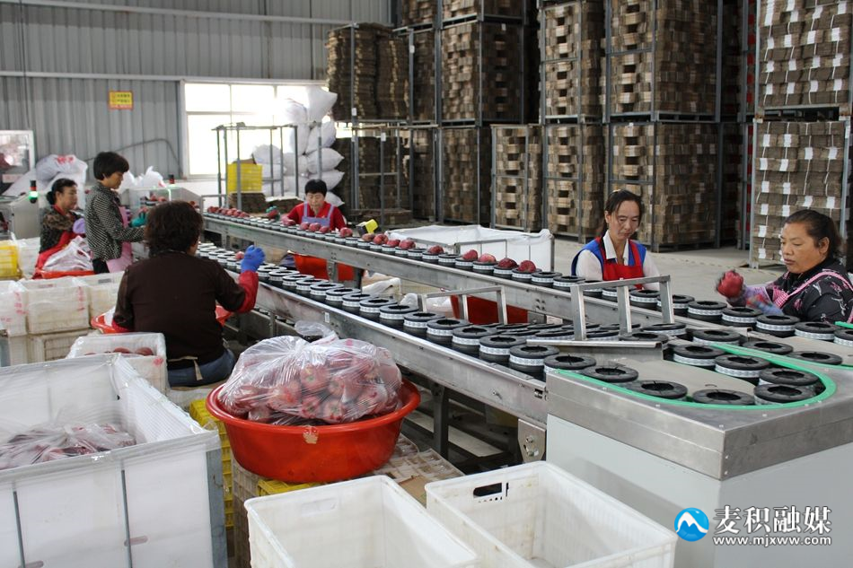 “每年摘苹果的时候我就在这个合作社上班,挺方便的,回家也能照顾上孩子,挺好的。”石佛镇村民马庆彦正在按苹果大小分类进行包装。
