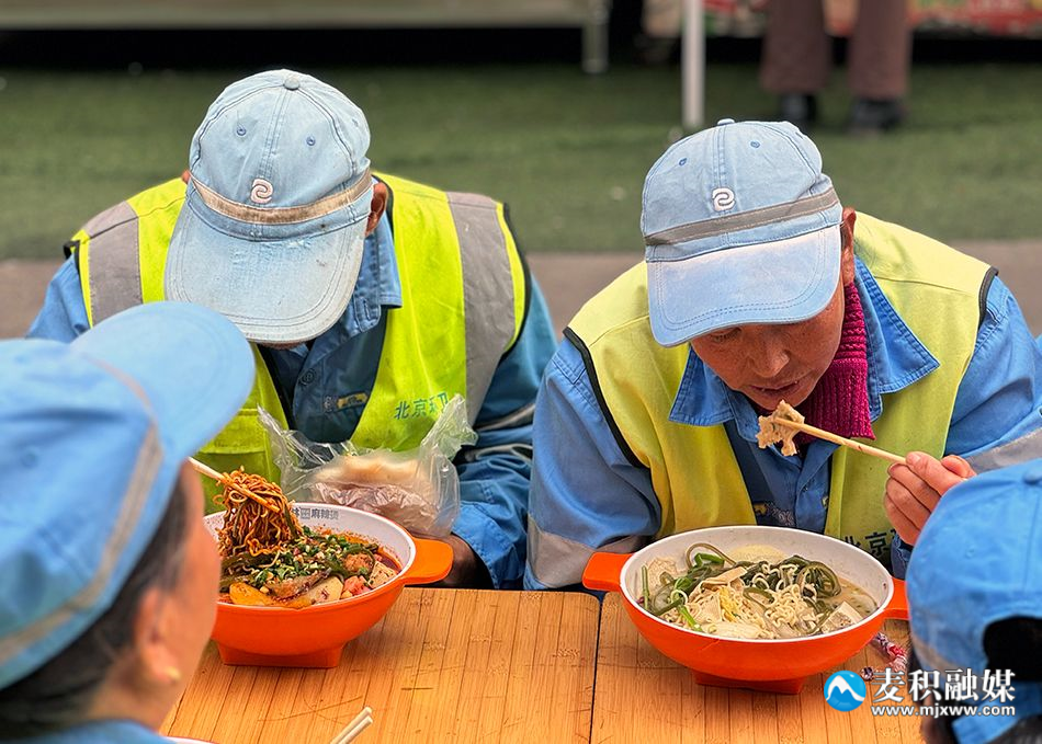 干净的桌凳、丰富的菜品、色香味俱全的热乎麻辣烫,让每一位到场的人都感受到了家的温暖。“今天的麻辣烫我们吃得非常暖心,这说明大家认可我们的付出,让我们环卫工人感受到了社会对我们的关心关爱。”环卫工人汪香娥满眼笑意地说。