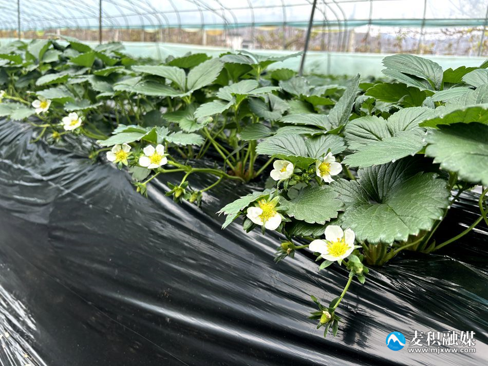 走进草莓种植园,一排排大棚映入眼帘。尽管棚外天气寒冷,棚内却温暖如春。只见一垄垄草莓秧苗绿意盎然,生机勃勃,长势喜人,一朵朵洁白如雪的草莓花在绿叶的映衬下,显得格外清新淡雅。种植户陈晨正忙着对草莓苗进行管护,希望今年能迎来一个丰收年。“这段时间正是草莓苗的生长期,我们主要是忙着清理杂草和追肥,确保根茎叶生长强壮,不然会影响草莓的品质和产量。”