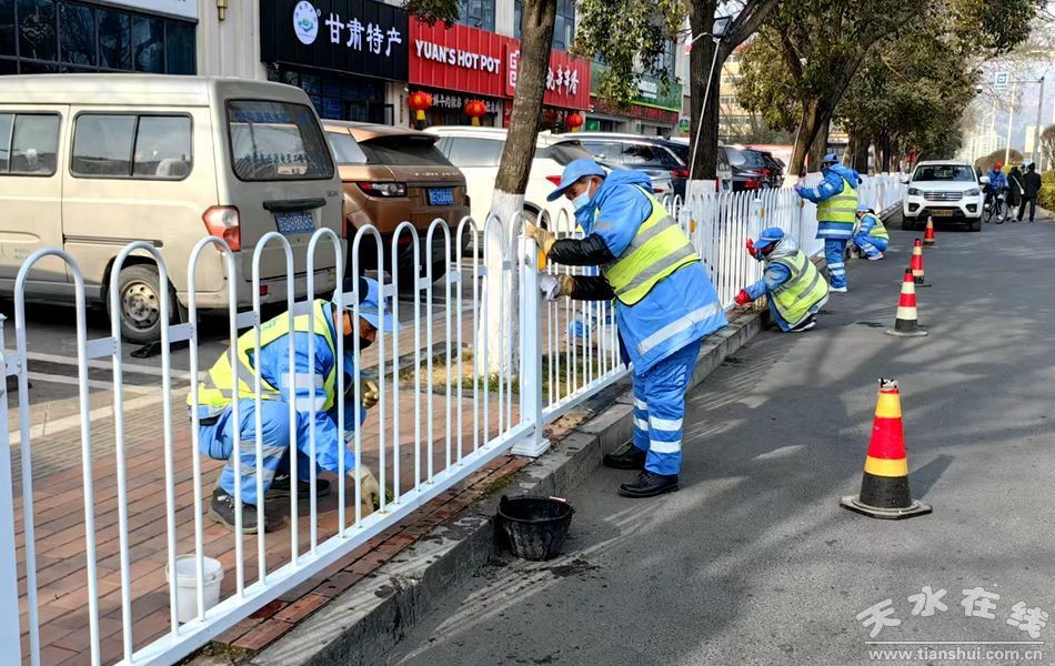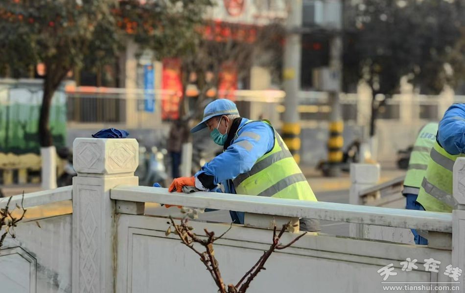 在麦积区桥南片区,环卫工人们正忙碌地清扫着主次干道及周边区域。护栏、石墩等公共设施在他们的精心擦拭下,变得光亮如新。小型冲洗车则以“地毯式推进”的方式,对地面油污进行彻底清洗,确保道路路面整洁无污。