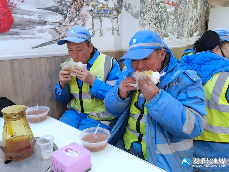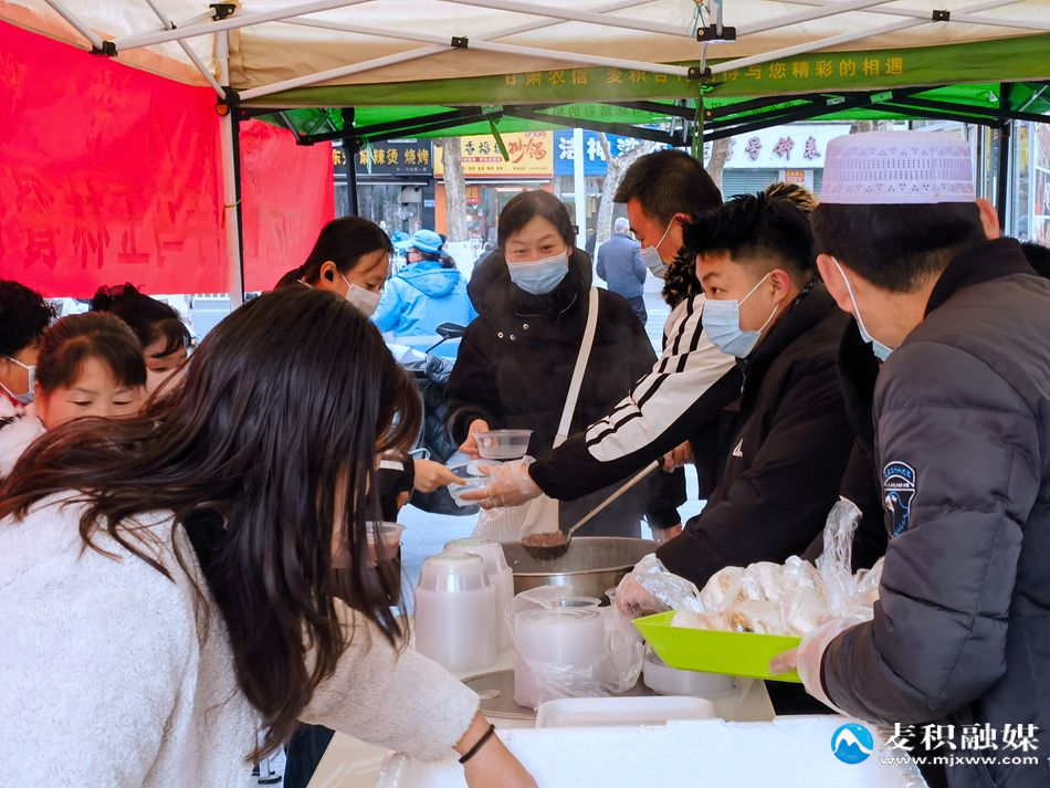 “每年腊八我们都希望通过送上一碗热气腾腾的腊八粥,给严寒中的人们带去一丝温暖,无论是辛勤工作的环卫工人还是路过的普通民众,都是我们关怀的对象。我们这不仅仅是一碗粥,更是我们对社会的一份感恩,希望能通过这样的活动,让更多的人感受到社会的关爱。未来,马玉林餐饮也会将这个传统一直延续下去,持续为我们的社会贡献绵薄之力,将这份爱心不断地传递下去。”麦积区马玉林餐饮工作人员秦芳芳说道。