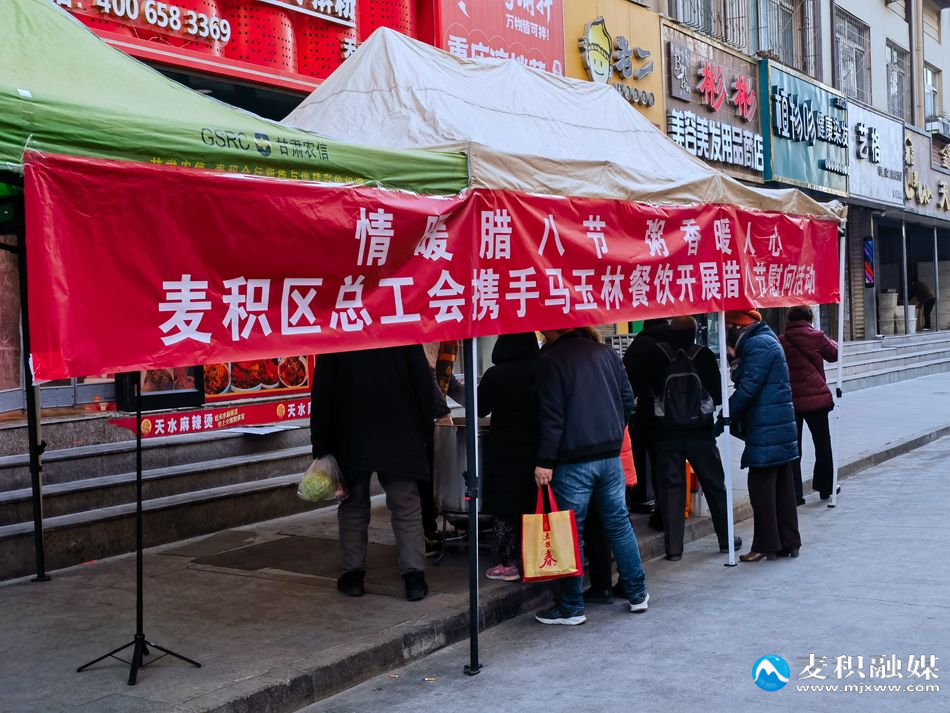 麦积区融媒体中心讯(记者刘秋钰董洁)1月7日,是中国传统的“腊八节”,俗话说“过了腊八就是年“,“腊八节”喝上一碗精心熬制的腊八粥最是应景。当天,麦积区总工会携手马玉林餐饮为新业态群体、环卫、城管等户外劳动者及群众开展了“情暖腊八节、粥香暖人心”腊八节慰问活动,弘扬了中华民族的传统美德,传递了社会的关怀与温暖。