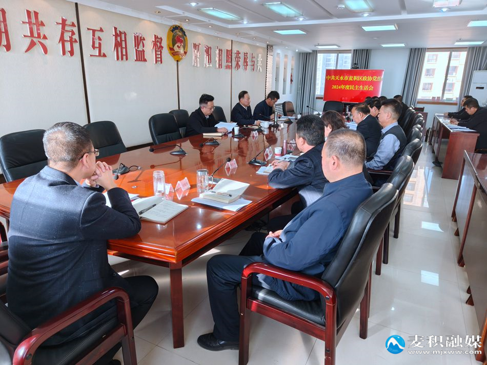 麦积区融媒体中心讯(记者王博雅)近日,按照区委安排部署,麦积区政协党组召开2024年度民主生活会。区政协党组书记、主席高志强主持会议并作总结讲话,区政协党组成员雷晓勇、石根才、王旺红出席会议。区纪委监委、区委组织部有关负责同志到会指导。