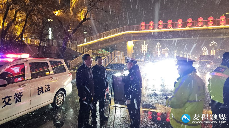 在秦麦高速麦积出口交通安全检查点,石生勃详细了解路面积雪清除、交通疏导、应急措施落实等情况,并对奋战在一线的交警同志表示感谢和慰问。他强调,雨雪冰冻天气道路交通事故易发频发,加之临近春节返乡高峰,车流量激增,各相关部门、单位要充分认识当前道路交通安全工作的重要性、紧迫性,树牢底线思维、靠实工作责任,细化完善方案、科学有效应对,全力以赴做好雨雪冰冻天气道路交通安全管理工作,切实保障人民群众生命财产安全和正常生产生活秩序。交管部门要坚持全警出动、全员上路,班子成员靠前指挥、一线调度,加强对重点区域、路段的全面巡查,积极有效疏导路面交通,严防发生交通拥堵和重大交通事故。要密切关注天气及道路通行情况,及时发布冰雪天气路况、交通管制、安全提示等信息,引导群众合理选择出行时间和行驶路线。要继续做好值班值守工作,备齐备足除冰扫雪等物资装备,确保遇到突发事件第一时间响应、快速高效处置,积极营造安全、有序的道路交通环境。