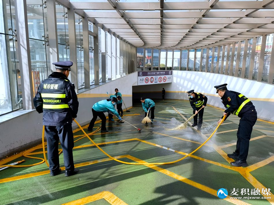 麦积区融媒体中心讯(记者刘秋钰董洁)为迎接春季旅游客流高峰,近日,麦积区城管局广场管理处联合区环卫中心、金丰物业服务中心,对天水火车站站前广场及火车站地下车库开展为期一周的“深度美颜”专项行动,进一步提升城市门户形象。