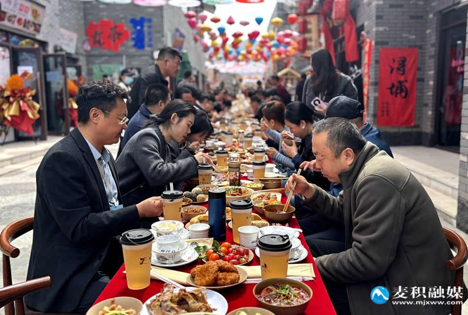 活动当天,阳光明媚,白鹿仓景区内人潮涌动、热闹非凡。在简短而热烈的开幕仪式后,一场别具一格的“千桌万人”共品麻辣烫plus活动率先登场。网络大V们与现场游客一同围坐在整齐排列的长桌旁,尽情品尝天水特色小吃及麻辣烫。鲜美的汤底搭配丰富多样的食材,每一口都满是醇厚滋味。大家一边享受美食,一边交流着对天水美食文化的感受,现场气氛热烈而欢快。