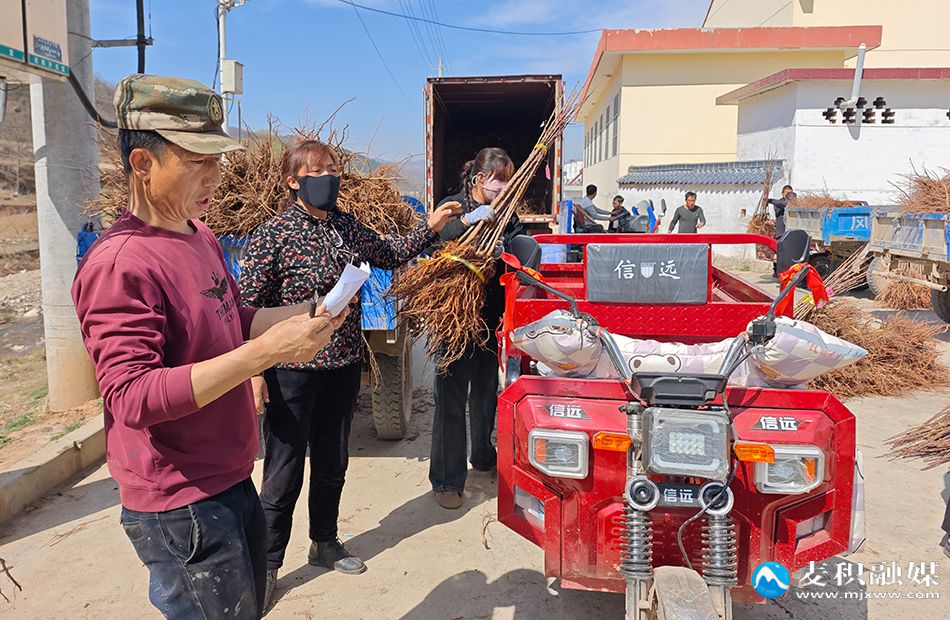 “张叔,您家3亩地,一共领80株苗子!”随着村干部的呼唤,果农张忠杰一边点数苗木,一边将成捆的苹果苗搬上三轮车。“以前买苗子要跑几十里山路,找不到好渠道,特别不方便。现在政府直接把苗子送到家门口了,省时又省力!”张忠杰感慨地说。