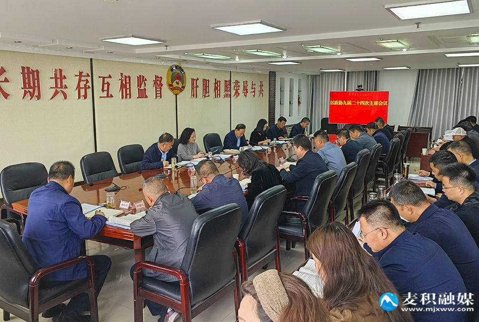 麦积区融媒体中心讯(记者王惠萍)4月10日,麦积区政协召开九届二十四次主席会议。区政协党组书记、主席高志强主持会议。区政协副主席兰春梅、张建凤、雷晓勇、石根才,秘书长王旺红出席会议。各委办以及议题相关单位负责人列席会议。