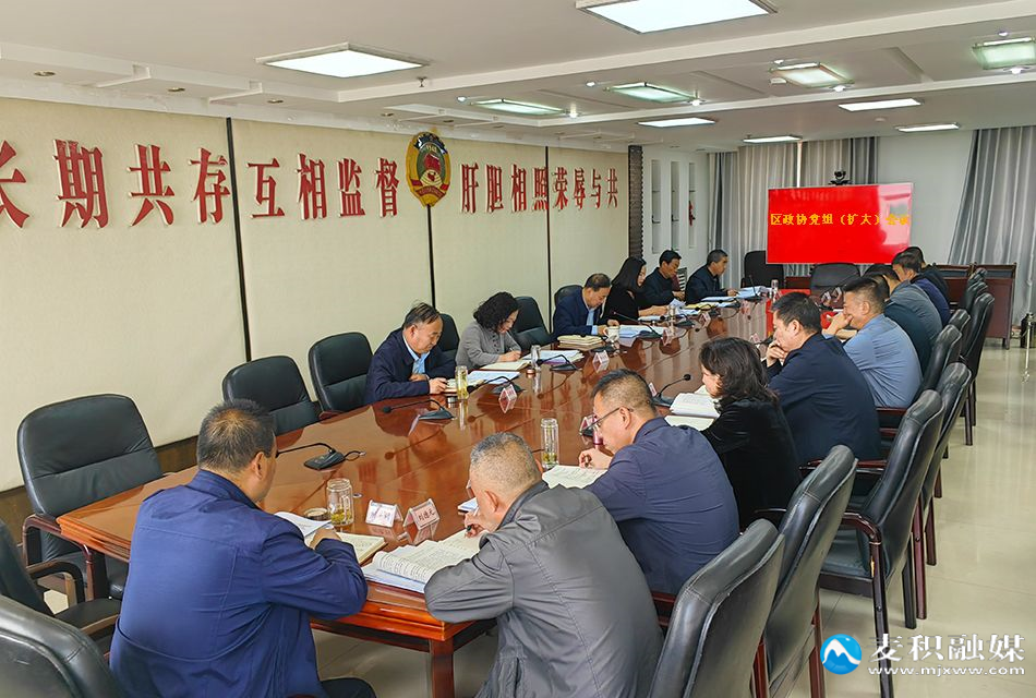 麦积区融媒体中心讯(记者王惠萍)4月10日,麦积区政协党组书记、主席高志强主持召开区政协党组(扩大)会议。区政协党组成员、副主席兰春梅、雷晓勇、石根才,党组成员、秘书长王旺红,党外副主席张建凤出席会议。