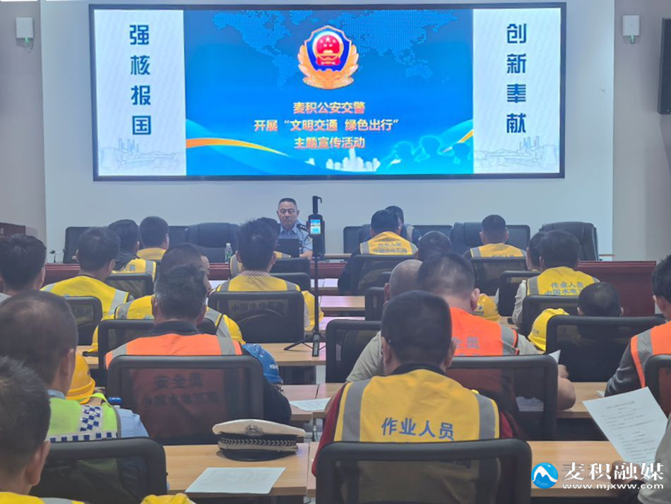 麦积区融媒体中心讯(记者刘秋钰董洁)为保障重大工程项目建设安全,提升施工人员交通安全意识,近日,麦积公安分局交警大队深入甘肃黄龙抽水蓄能电站下水库工程建设工地,开展“文明交通绿色出行”主题宣传活动。