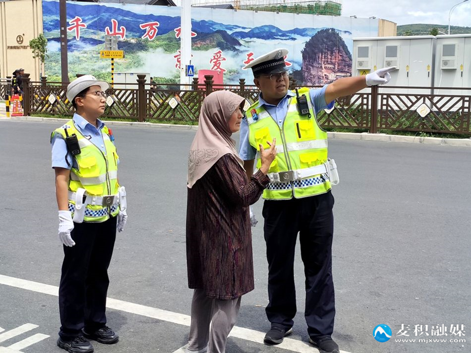麦积公安交警的倾力付出,在游客心中激起了阵阵暖流。一位来自陕西的刘先生自驾抵达景区时正为停车犯难,交警主动上前将其引导至临时停车点。他感慨道:“远远看见警服就安心了,麦积山风景美,这份服务更暖心!”这份真挚的认可,无疑是对烈日下坚守者们最好的慰藉。