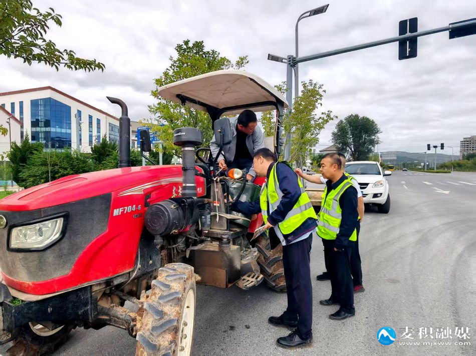 在花牛镇和渭南镇,工作人员结合当地果园种植、粮食收割的生产特点,重点排查了农机作业安全防护措施落实情况。对合作社成员违规操作、农机无牌行驶、无证驾驶等行为进行了严肃纠正,并现场发放了《农机安全生产操作规程》《秋季农机作业安全注意事项》等宣传资料200余份。同时,与合作社负责人签订了《秋季农机安全生产责任书》,明确安全管理责任,从源头压实安全责任。