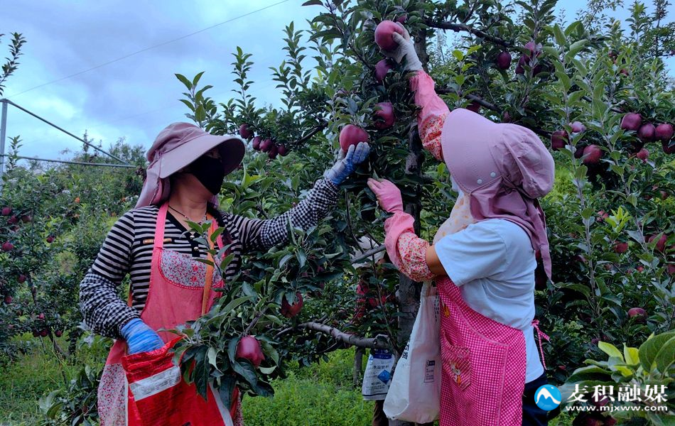 果园里采收正忙,合作社的分拣厂也热火朝天。果农们熟练地将苹果按照大小分类、清洗,再送入冷库储存。“现在正是采收季,需要提前入库,等采收结束,客商就会来果库采购。”廖三代介绍,合作社用工大多来自周边镇,农忙时用工量约100人左右,还长期吸纳了47户困难群众,帮助村民实现在“家门口”就业增收。
