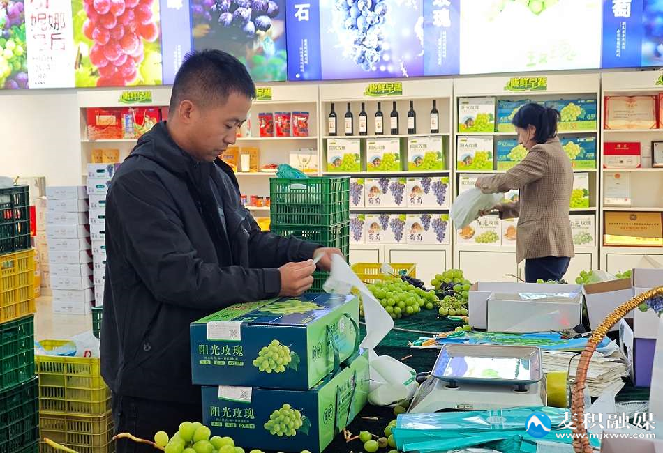 “双节”期间,基地精准对接节日消费需求,推出的礼盒包装成为市场“新宠”。“我们不仅做了礼盒包装,还推出葡萄品类拼装,能根据大家的需求调整搭配。”某商场销售人员杨艳霞介绍,拼装礼盒集多种葡萄品种于一体,既丰富了口感层次,又提升了礼品的精致感与档次,无论是走亲访友还是节日馈赠,都成了高端又实用的选择,一经推出便备受青睐。