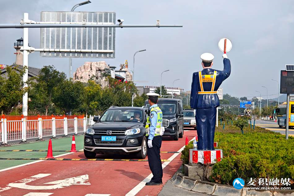 热门景区入口及周边路段同样是交通保障重点区域。在麦积区各景区入口及周边路段,执勤交警不间断指挥交通、引导旅游车辆规范停放,并主动为游客提供路线咨询服务,有效缓解景区周边交通压力。