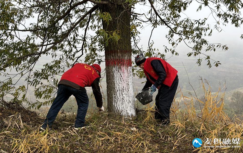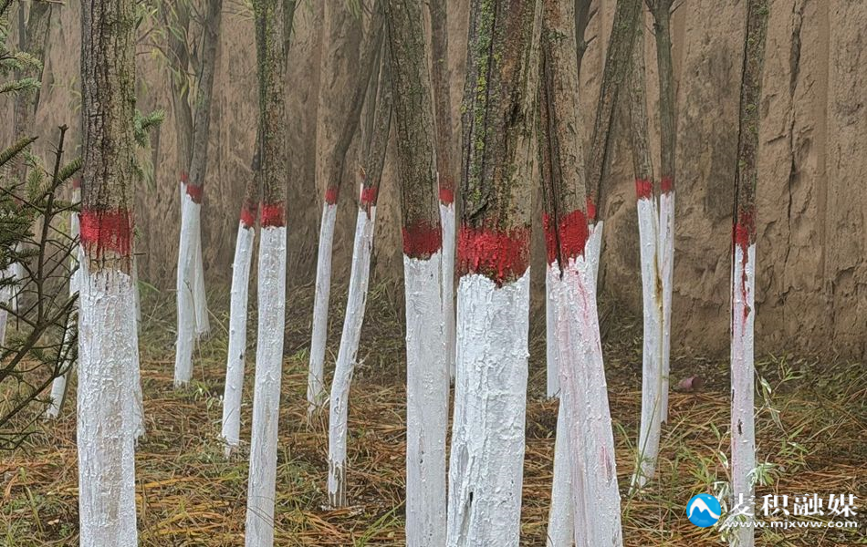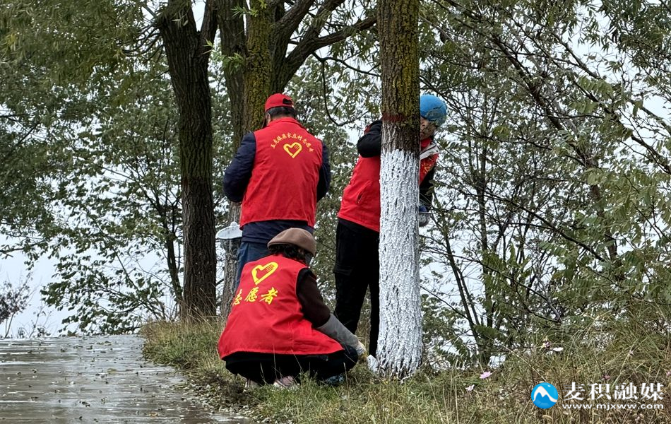 麦积区融媒体中心讯(记者任泽瑄宋倩倩)天气转寒,麦积区五龙镇的主次干道上一派忙碌景象。镇村干部、志愿者与群众分工协作,正给路旁的树木“穿”上整齐的白色“冬衣”。一道道整齐的“白裙”不仅成为树木越冬的“防护盾”,也成为冬日里一道清新的风景线。
