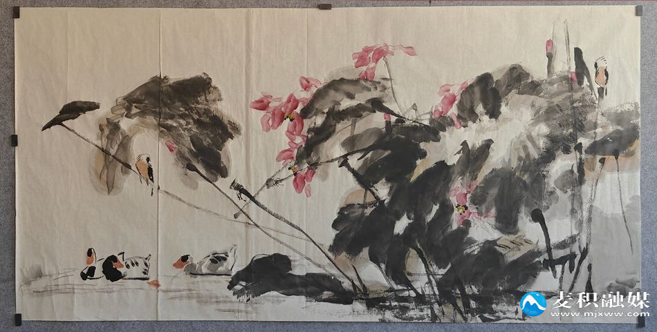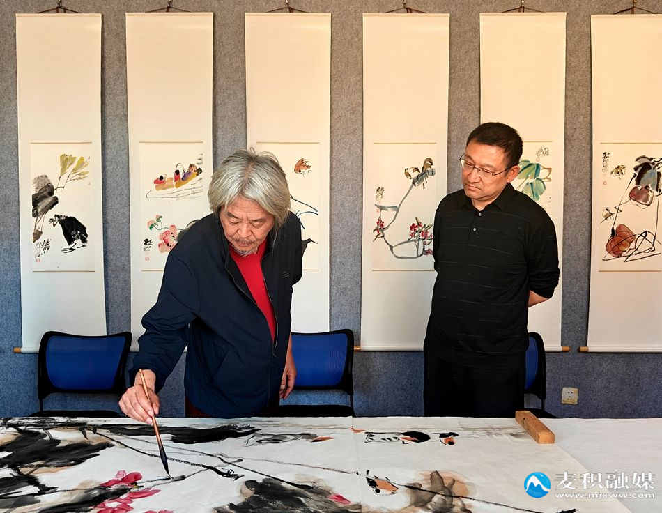活动中,采风团一行首先来到世界文化遗产麦积山石窟实地采风,领略千年石窟的艺术魅力,感受麦积深厚的历史人文底蕴,为书画创作积累鲜活素材、汲取创作灵感。在创作交流笔会现场,墨香四溢、氛围浓厚。中国美术家协会会员、江苏省美术家协会理事、民革江苏省中山画院副院长、徐州市政协委员张云生与甘肃省人民政府文史馆研究员、天水市美术家协会副主席、麦积区美术馆馆长杜未联袂创作、现场挥毫。书画家们凝神运笔、点染勾勒,笔墨交融间,一幅气韵生动、意境悠远的荷塘佳作惊艳呈现。期间,两地书画家们还围绕创作理念、笔墨技法深入交流,在切磋互鉴中展现书画艺术魅力。