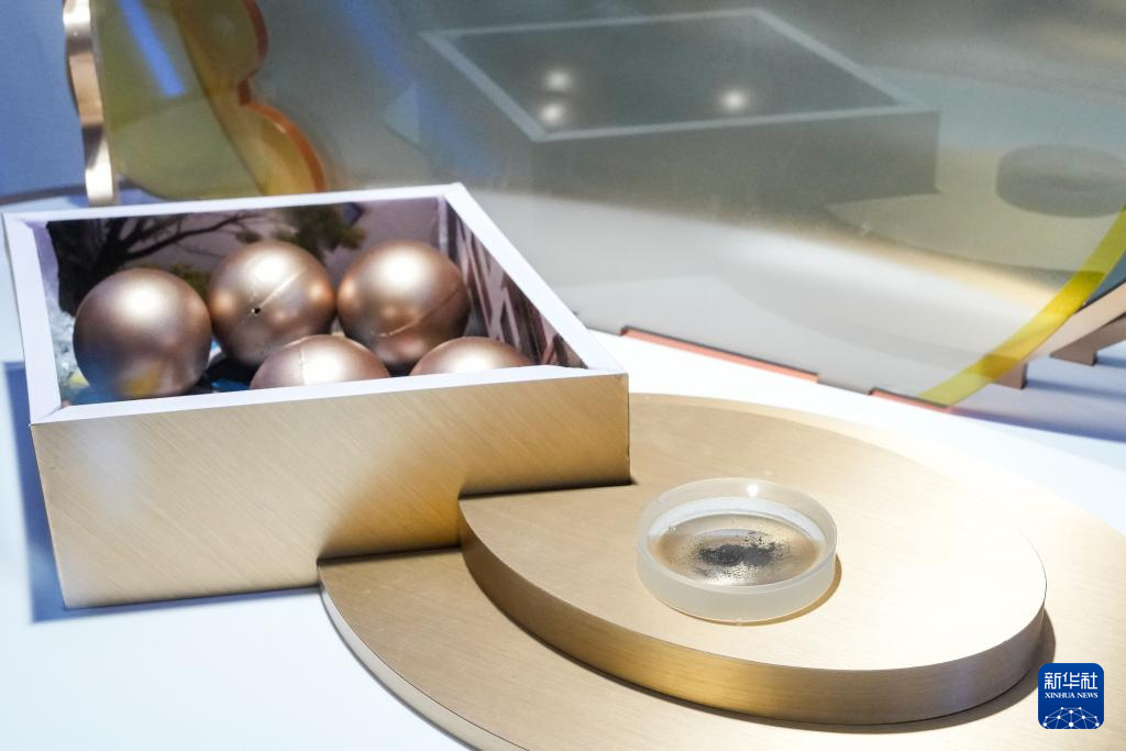这是4月24日在航天科普展览上拍摄的嫦娥六号月壤样品。