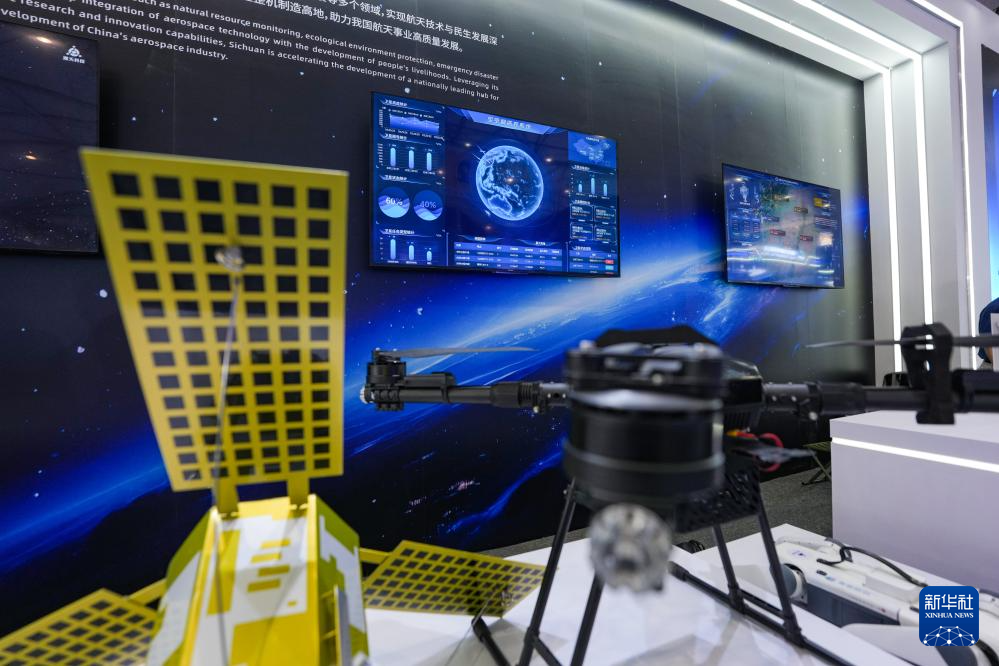 这是4月24日在航天科普展览四川航天展区上拍摄的卫星应用服务展示。
