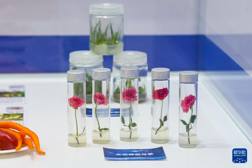 这是4月24日在航天科普展览上拍摄的太空微型月季。