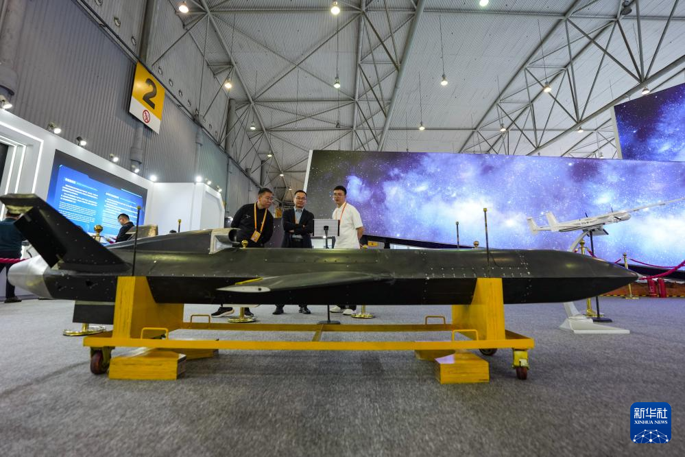 4月24日,参会嘉宾在航天科普展览四川航天展区上参观无人机展品。
