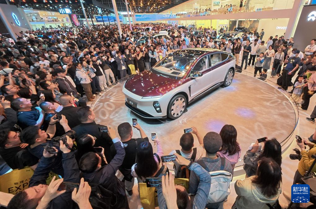 4月26日,在2026北京车展上,参观者在智己公司展台参观智己LS8。