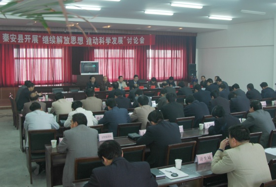 近年来,秦安县先后组织开展了几次解放思想大讨论活动,有效地解决了部分干部群众思想观念落后、改革创新意识不强等问题,推动了经济社会的持续快速发展。目前,全县改革发展正处在一个关键时期,因此,我们需要在深化对县情的科学认识中解放思想,在认清目标、明确任务中解放思想,在比学先进、查找差距中解放思想,在转变政府职能、强化为民服务上解放思想,进一步开拓新思路,创造新方法,切实从不适应科学发展要求的思想束缚中解脱出来,积极构建充满活力、富有效率、更加开放、有利于科学发展的体制机制,顺势而为、乘势而起,努力实现各项工作的新突破。